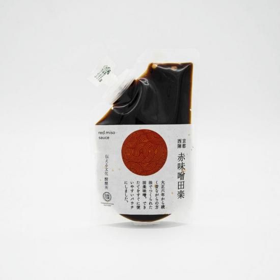 じっくりと1時間火入れした、こってり濃厚な味わいの田楽みそです。垂れにくく仕上げているため、そのまま田楽や焼きおにぎり、炒め物の味付けにも便利。創業百余年の「加藤みそ」が手づくりの糀と木桶仕込みで丹念に醸した赤味噌は、力強いコクと香ばしさが特長です。深みのある味わいが素材を引き立て、和の旨みを一層感じさせます。